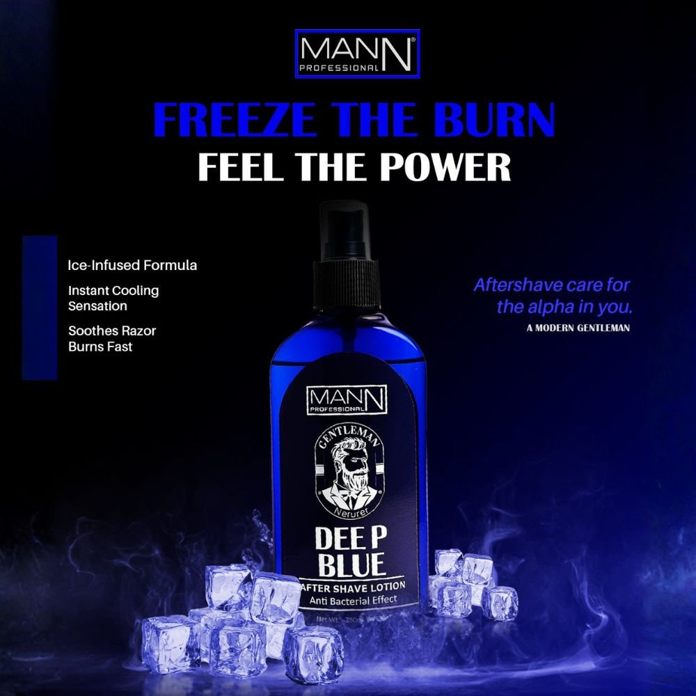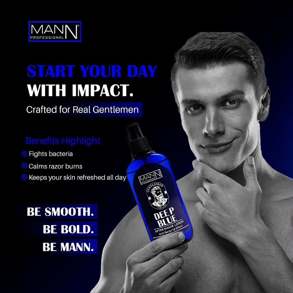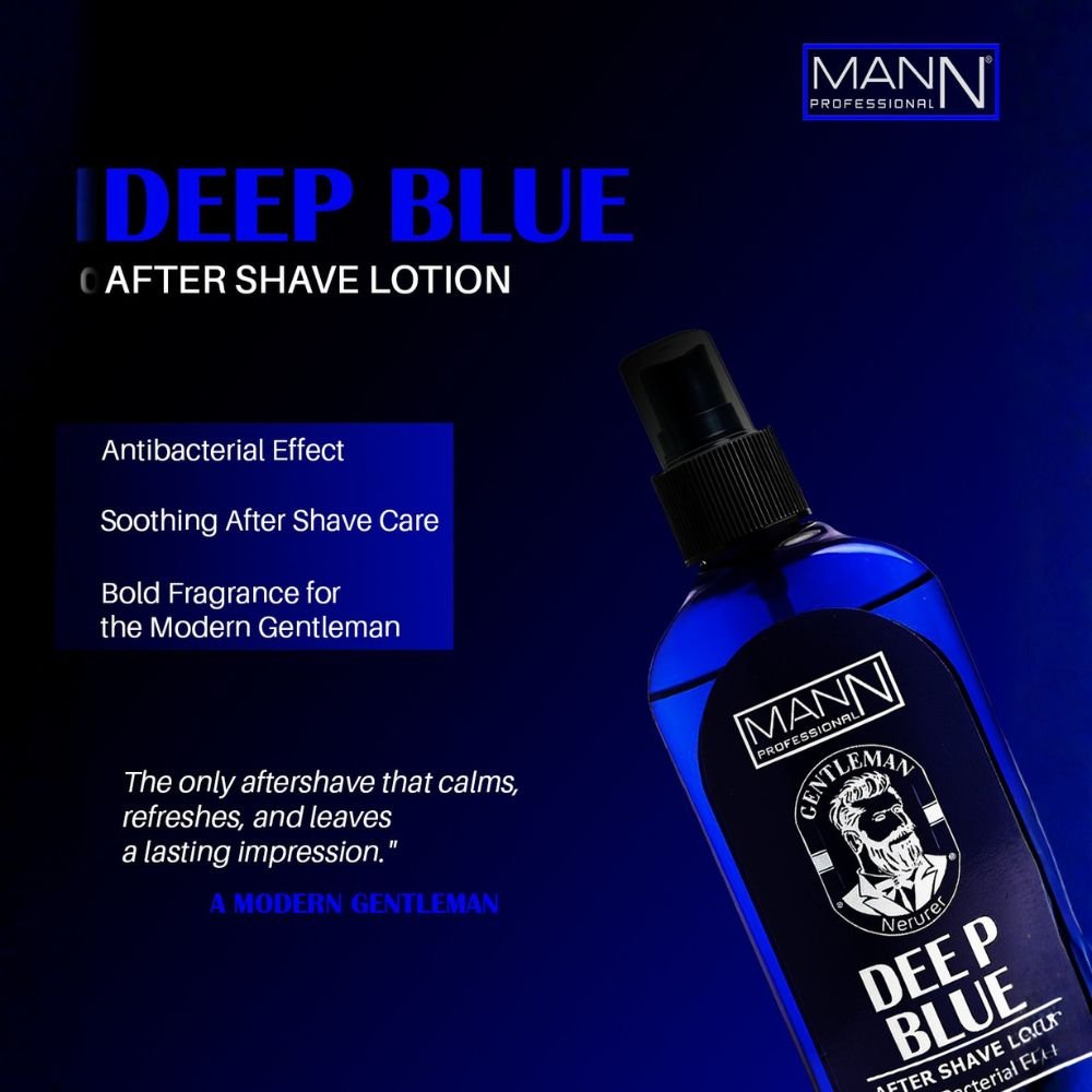 The Mann Deep Blue After Shave Lotion 250ml is specially formulated to soothe, refresh, and protect the skin after shaving. Its cooling deep blue formula helps calm razor burns, reduce irritation, and tighten pores while leaving a long-lasting fresh fragrance.